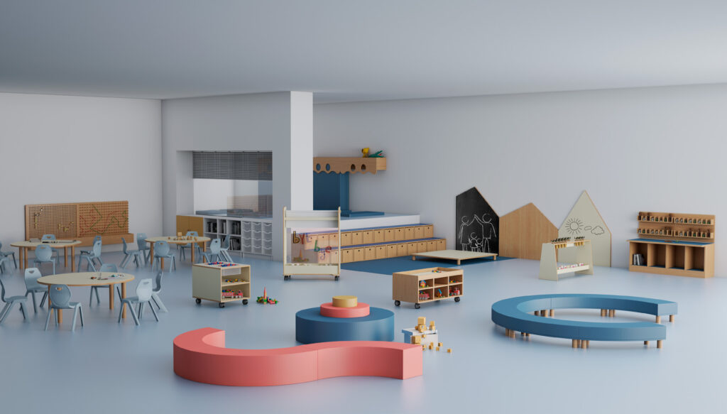 La collezione Progetto 06 trasforma gli asili nido in veri nidi protetti, dove i più piccoli esplorano, giocano e crescono immersi in sicurezza e colore.